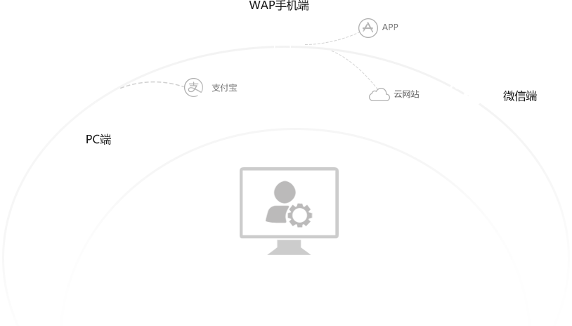 PC網(wǎng)站、WAP手機(jī)網(wǎng)站、微網(wǎng)站、支付寶服務(wù)窗、APP客戶端、云網(wǎng)站六網(wǎng)合一。