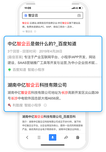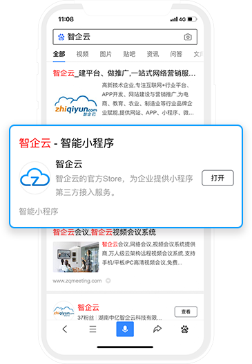 智能小程序被百度收錄后,用戶在百度App搜索關鍵詞可展現相關結果